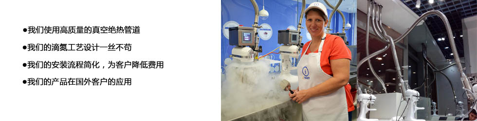班德低溫專業研發生產的全自動液氮冰淇淋機系統,從供液罐體系統,真空管路系統到使用終端智能化操控系統,我們一應俱全的自主設計研發。1 為所有客戶搭配智能化大屏幕操控系統,精確液氮到每一滴。2 超真空管道系統供液是自動液氮冰淇淋機的核心組成。更低限度達成液氮常規消耗。液氮設備無結霜。3 智能化系統設定內部報警系統。液氮補充系統完備。更成熟的中英文人機界面系統。操作無障礙。