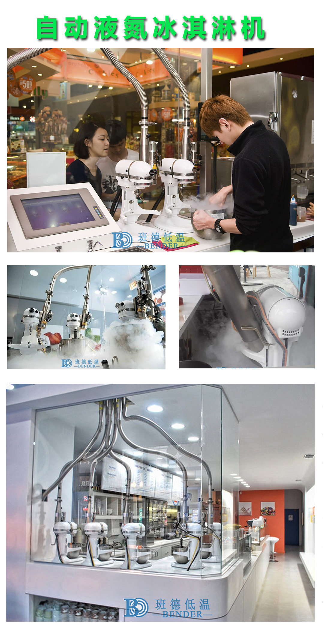 班德全自動液氮冰淇淋機系統特點:
